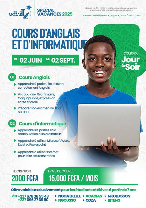 Situé à Yaoundé, l’Institut Mozart se distingue par son approche pratique. En effet, les cours sont pensés pour préparer les apprenants au terrain. De plus, l’école propose un environnement d’apprentissage adapté aux réalités locales.